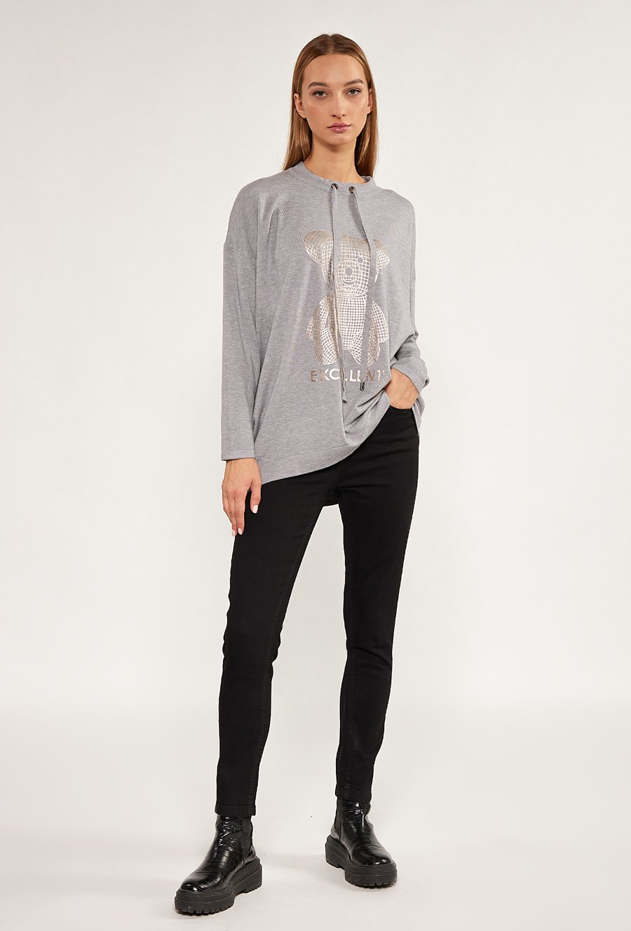 Sweter damski z ozdobnym misiem