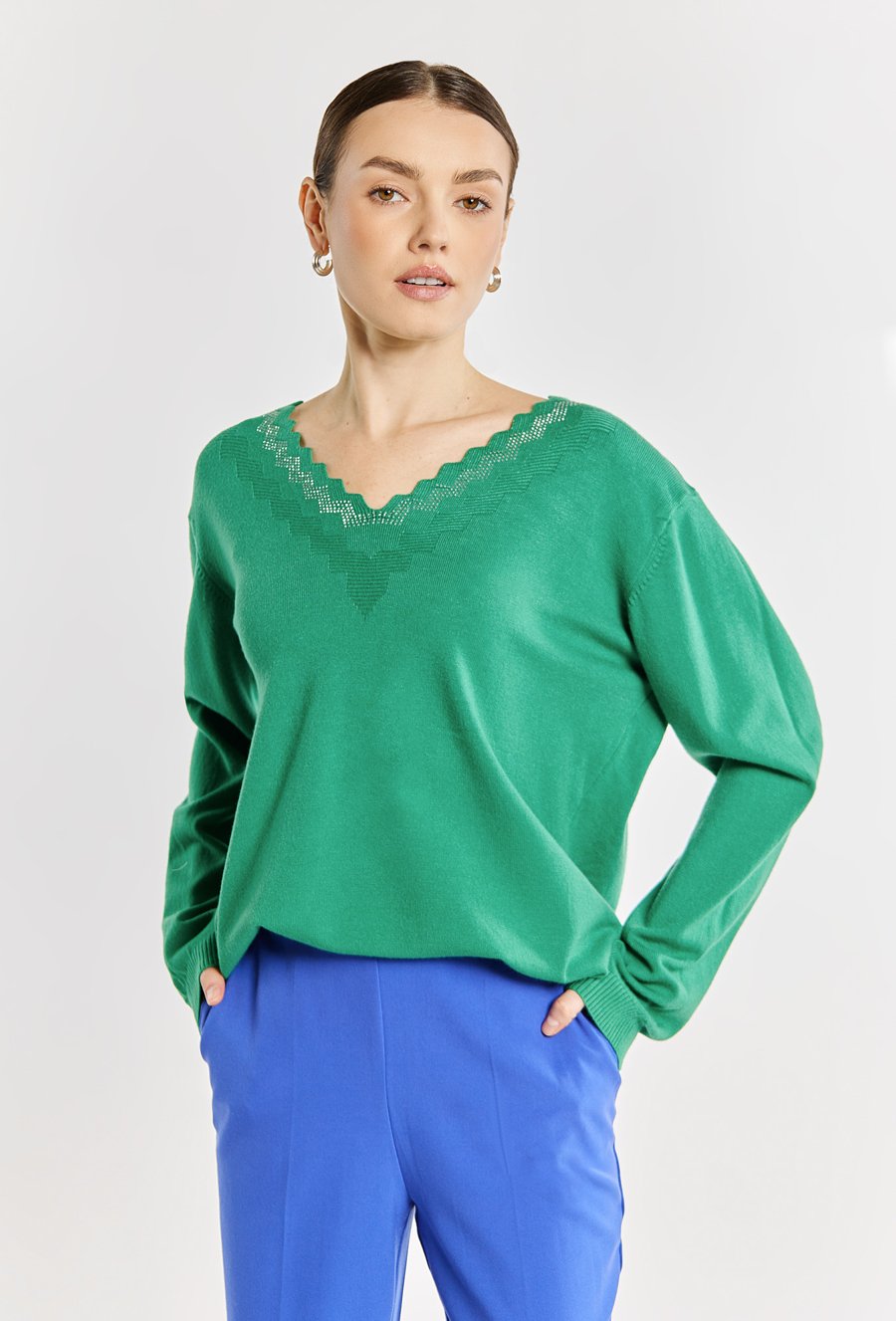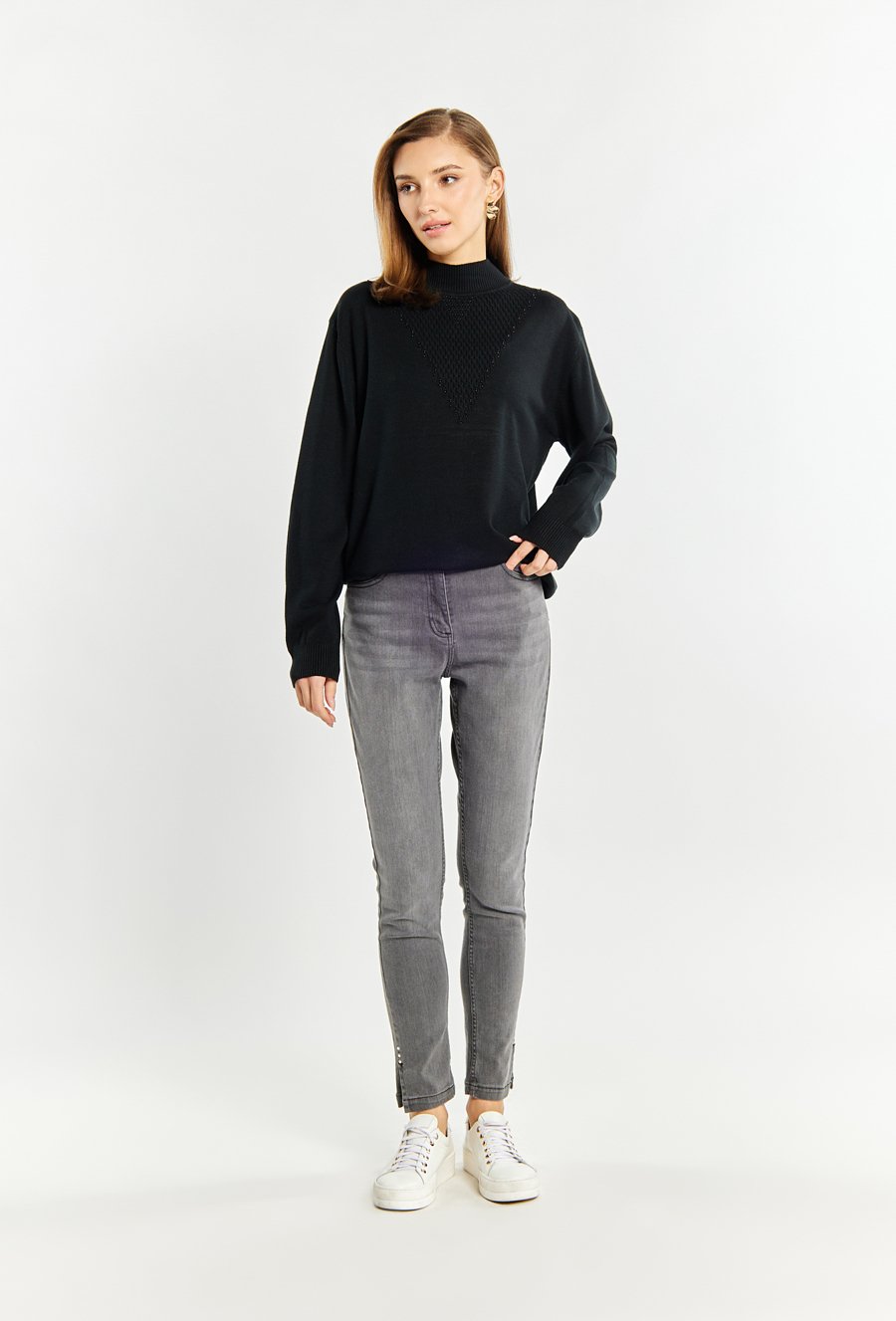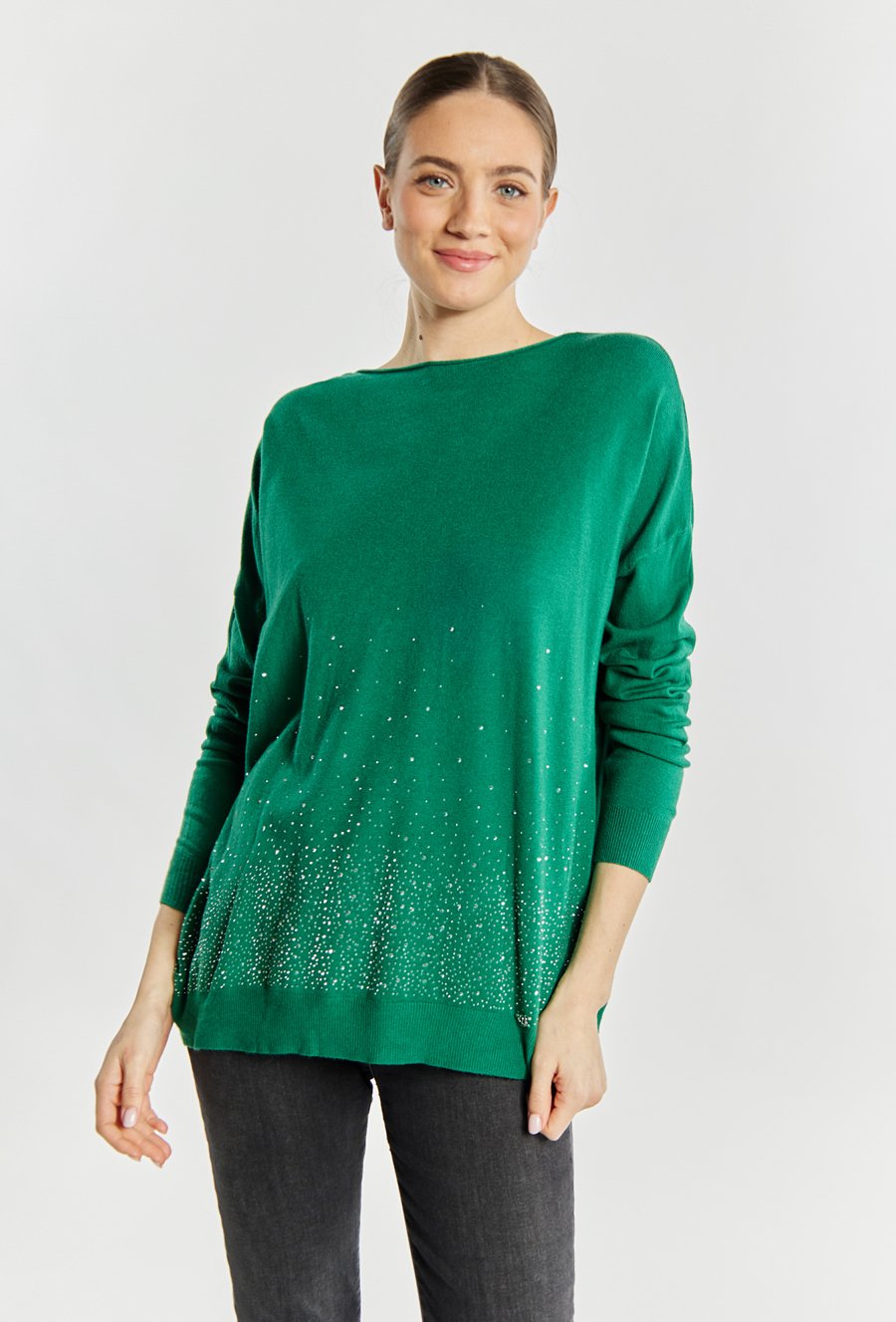 Sweter damski z dżetowym dekoltem