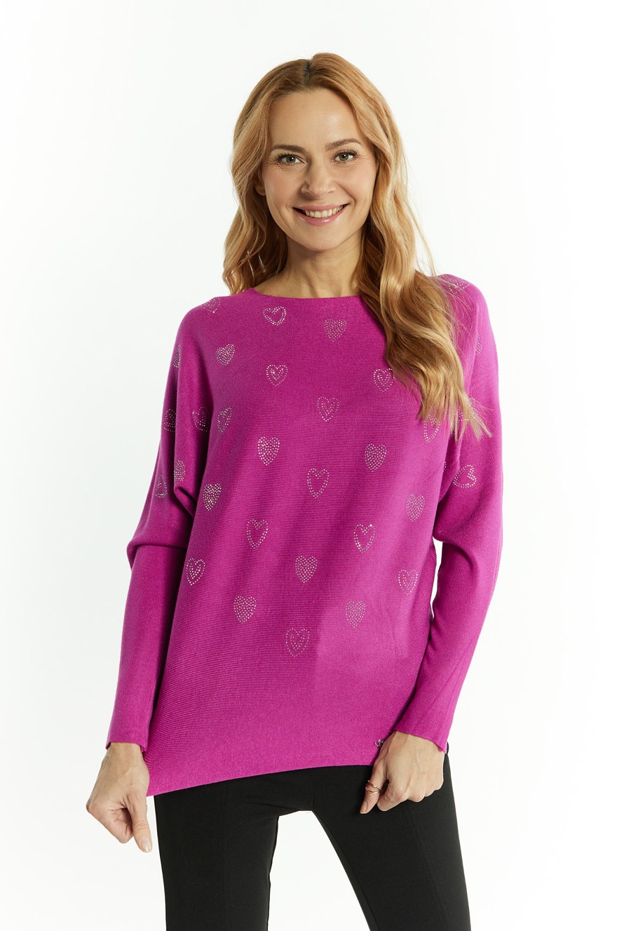 Sweter damski z dżetami w kształcie serduszek