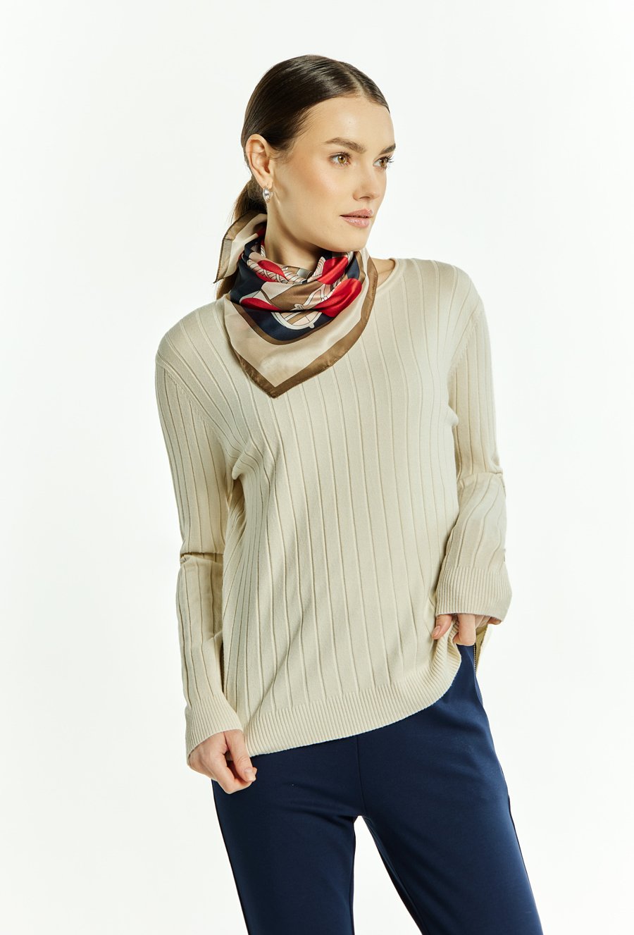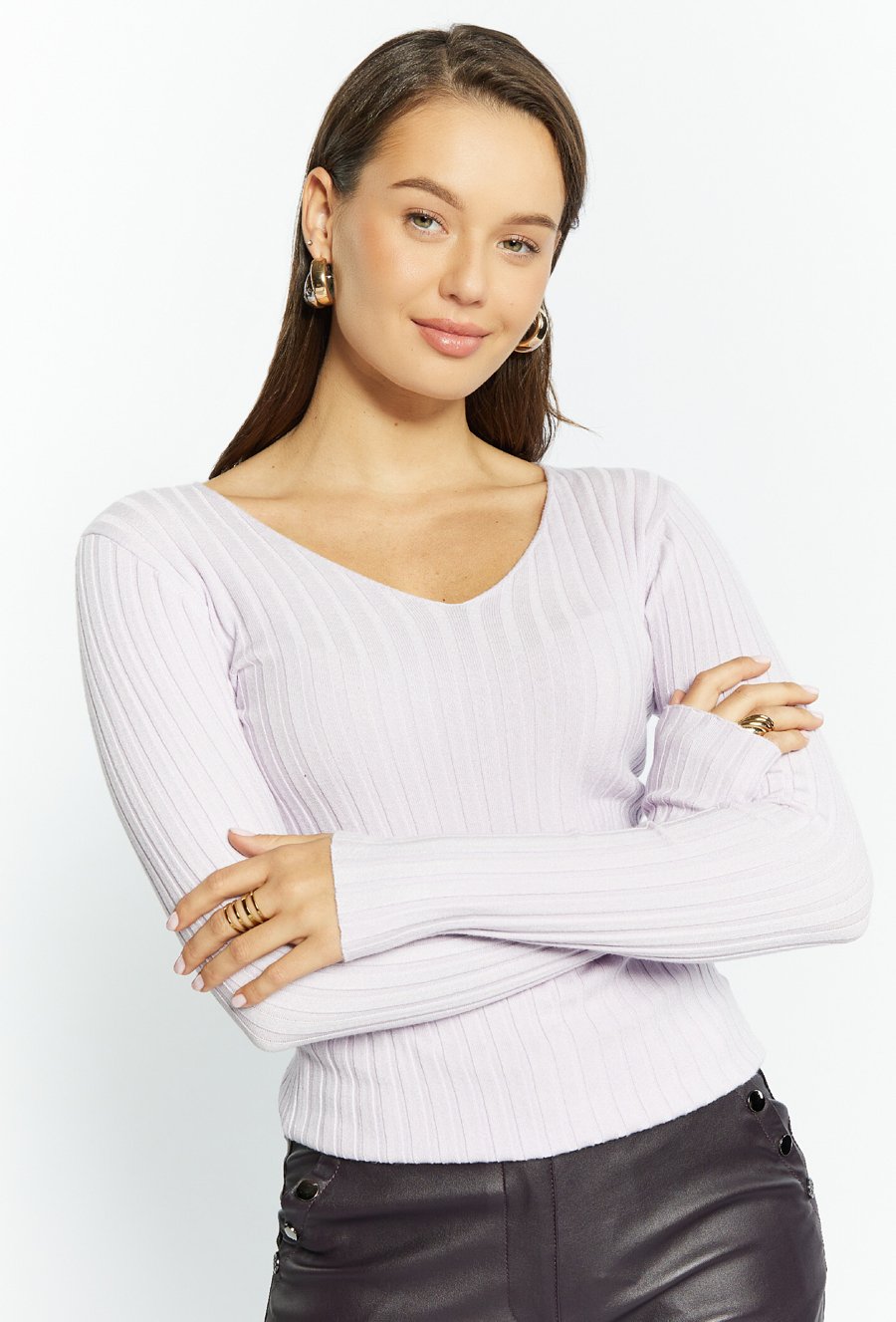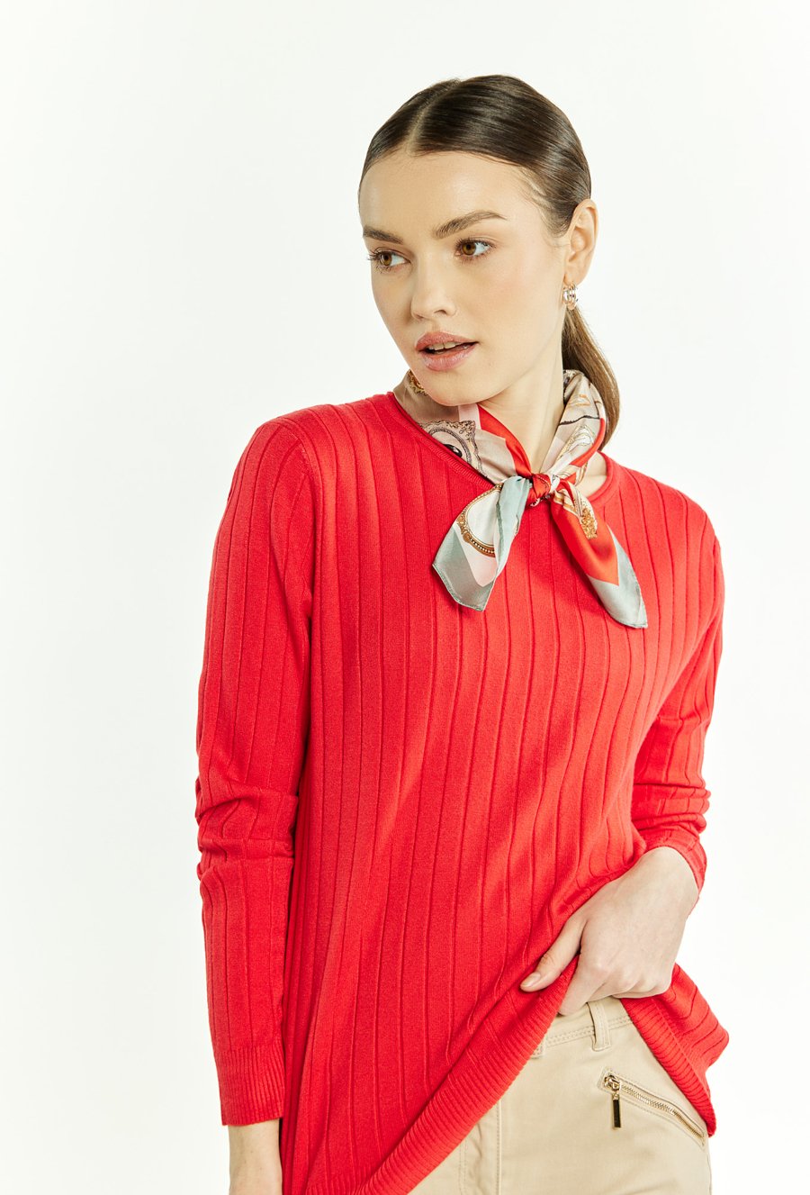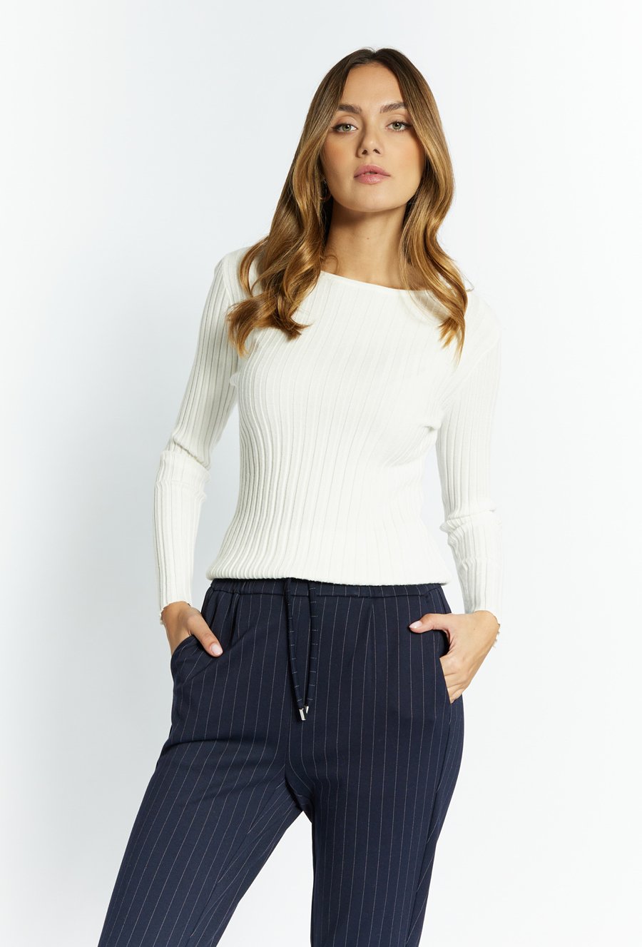 Prążkowany sweter damski