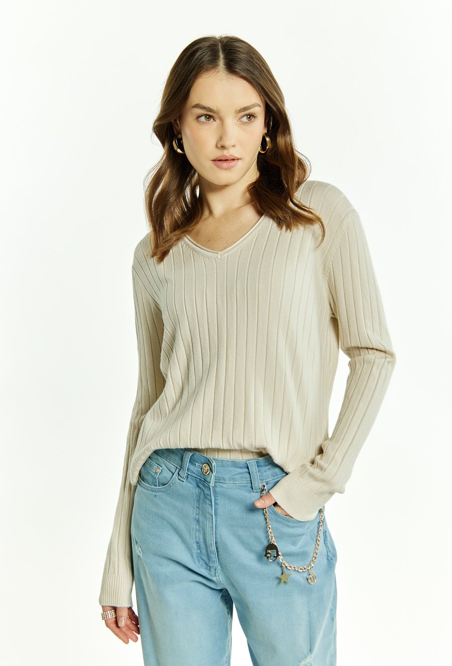 Sweter damski z dekoltem w serek