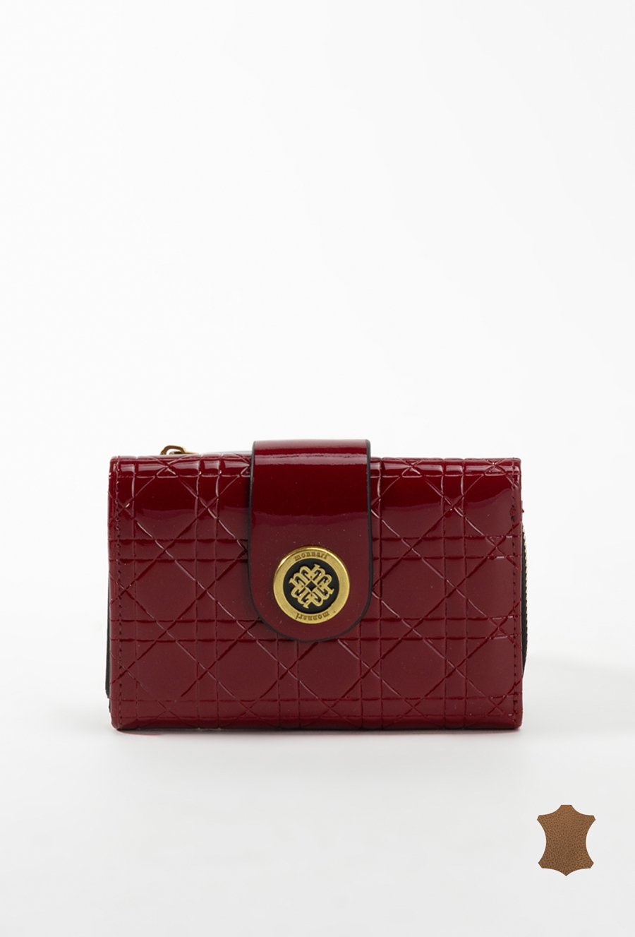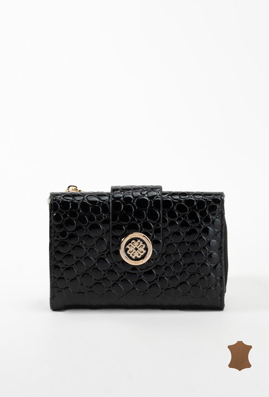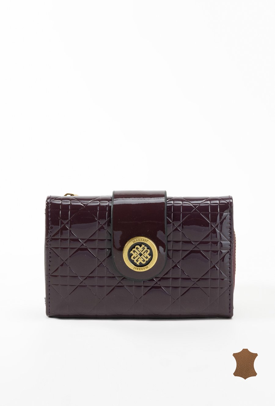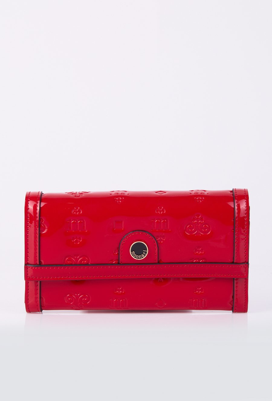 Lakierowany damski portfel z wytłoczonym monogramem