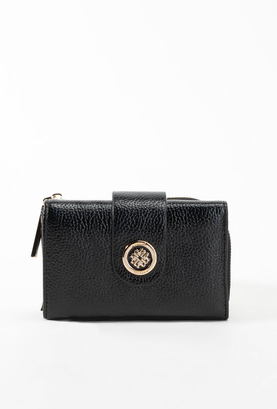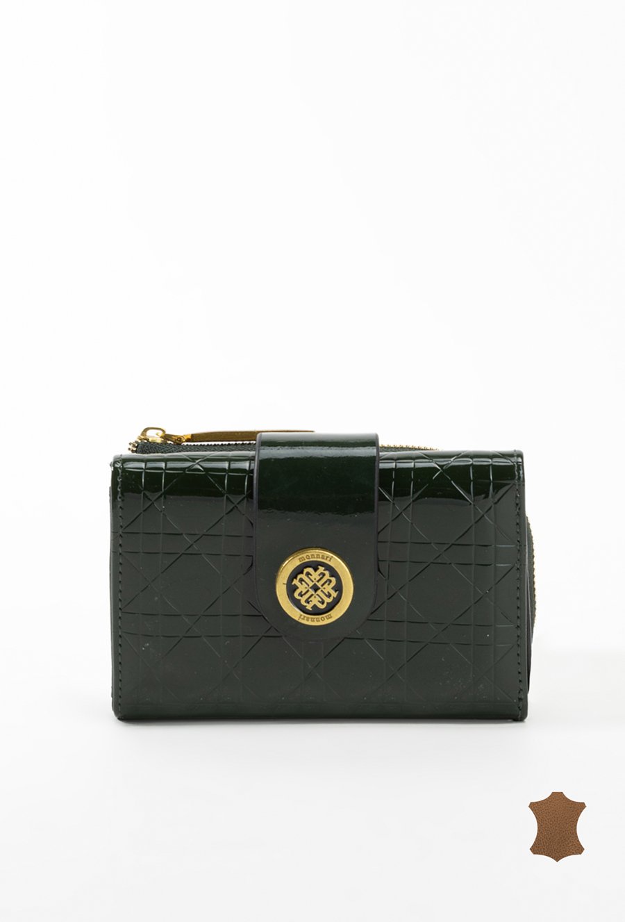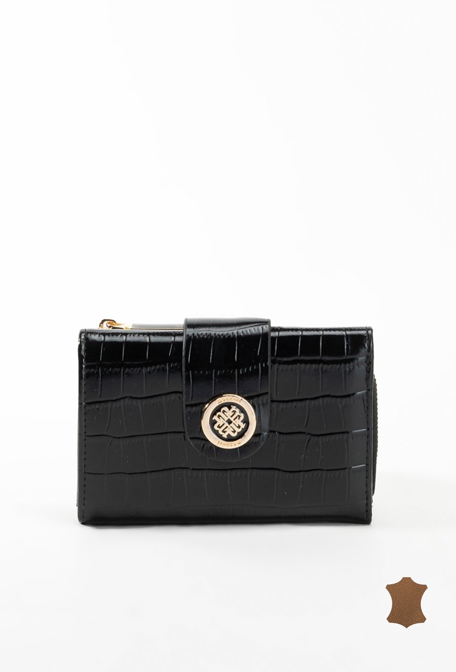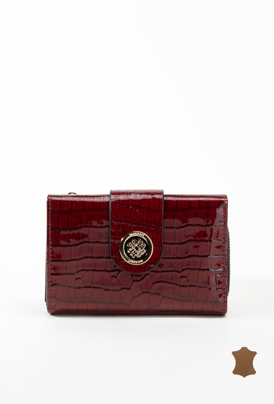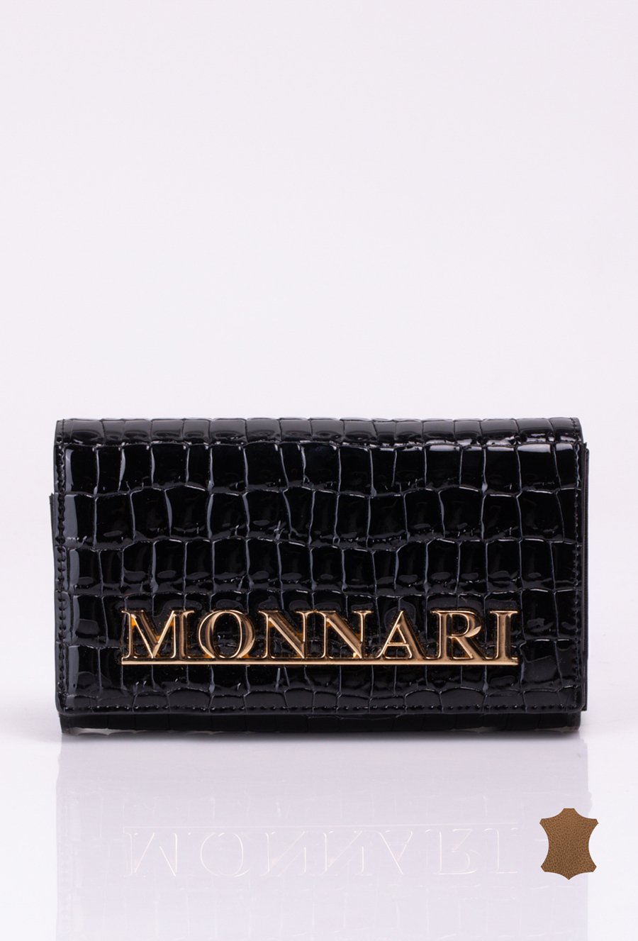Lakierowany damski portfel z wytłoczonym monogramem